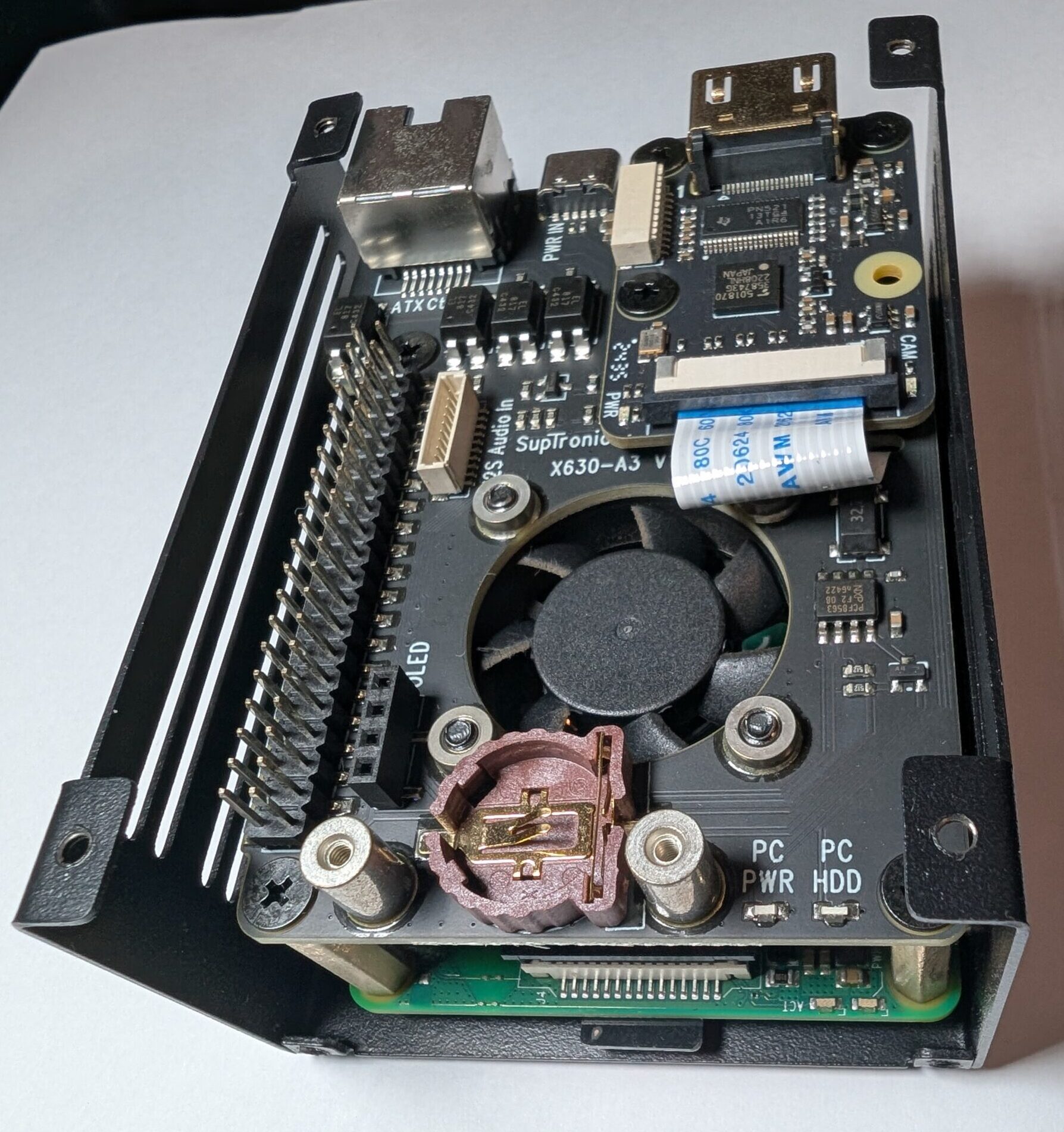 サイズもコンパクトで、Raspberry Pi 4と重ねて設置しても違和感がなく、一体型のような見た目になります。