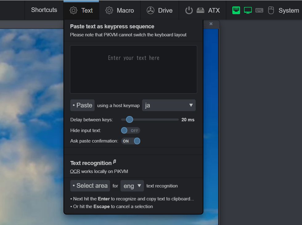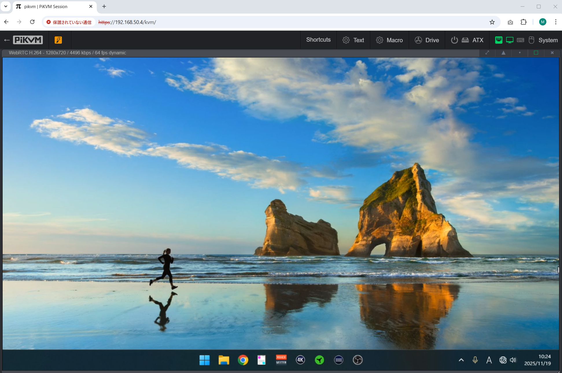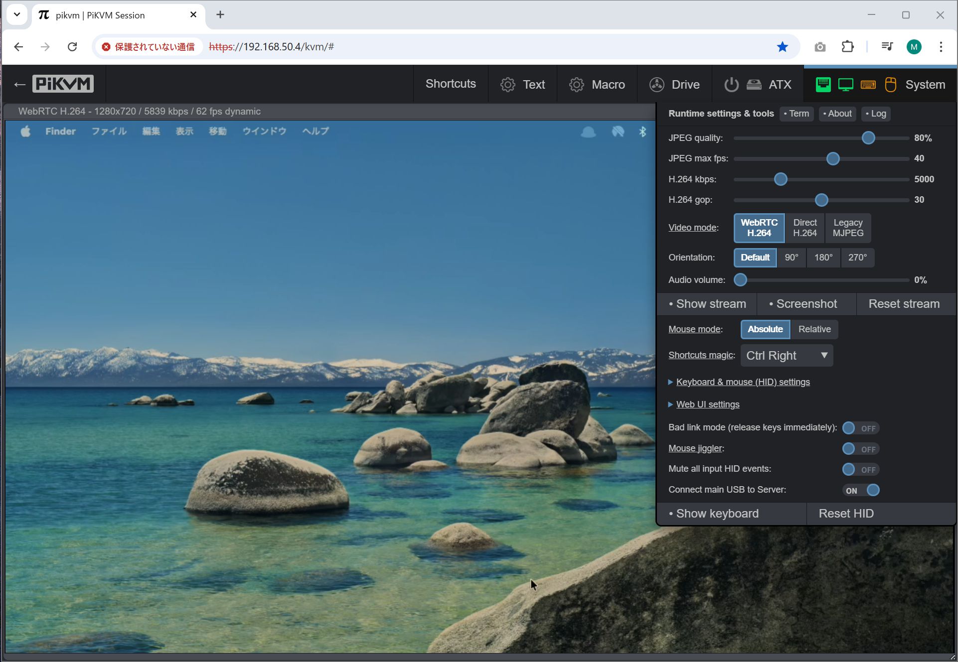 テキスト入力やマウス操作も自然で、SSHやRDPを使わずにBIOS設定まで操作できる点が強みです。※4Kではカクツクことがありました