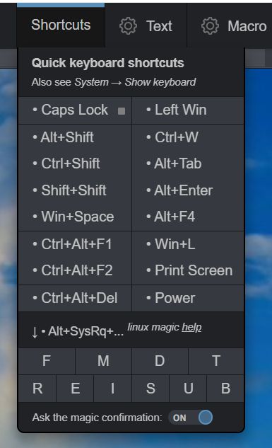 「Shortcuts」では、自端末と遠隔端末でごっちゃになりそうなショートカットコマンドを、こちらから送信する事が出来ます。便利ですね。